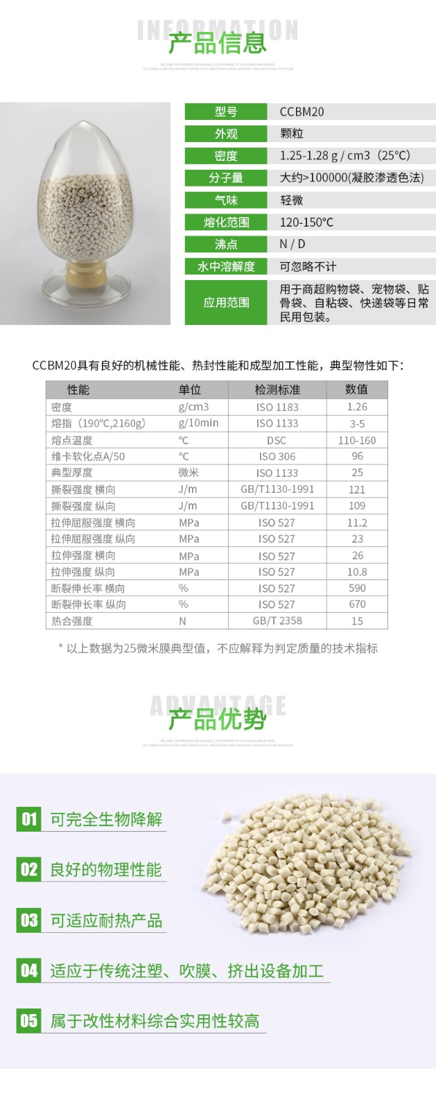 吹膜材料CCBM 20的產品優(yōu)勢: